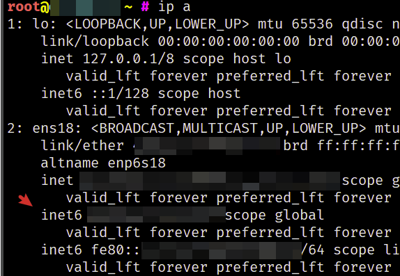 使用前,我们可以看到无论是本地还是公网网卡都有 inet6,即都有 IPv6 地址: