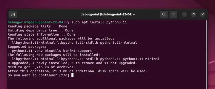 在 Ubuntu 22.04 LTS 中安装 Python 3.11